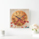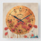 Carrée Poppies rouges Floral Rustique Monogramme Horloge