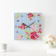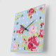 Carrée Roses Sur Mur Bleu Horloge