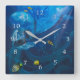 CARRÉE TORTUE DE MER EN VOL MUR CARRÉ HORLOGE