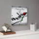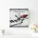 Carrée Touches de piano ondulées et rose rouge - Horloge