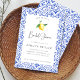 Invitation tes invités à une fête ensoleillée avec notre invitation à la douche nuptiale en carreaux méditerranéens Lemon. Ce modèle magnifiquement conçu et personnalisable saisit parfaitement l'essence d'une douche nuptiale d'été, alliant l'élégance intemporelle des carreaux méditerranéens au charme frais et fou des citrons. Les motifs de tuiles bleues et blanches, jumelés à des accents de citron vibrants, créent un visuel époustouflant qui donne le ton à un événement joyeux et sophistiqué. N'oubliez pas d'explorer le reste de la collection pour créer une douche nuptiale cohésive qui impressionnera vos invités!