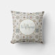 Coussin avec une série de neuf (9) carreaux de style espagnol différents en motif de mosaïque de couleur neutre. Tuiles plus grandes sur l'avant et tuiles plus petites sur l'arrière. Ajoutez le nom et l'initiale à l'arrière.