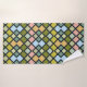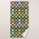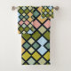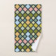 Serviette De Bain Colorée De Différents Carrés De Couleurs De Verts, Blues, Rose et Tans.