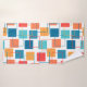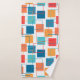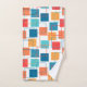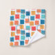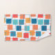 Ce kit de serviettes a un design géométrique de carrés en mandarine, pavot, corail et des tons turquoises éparpillés dans leurs contours.