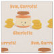 Tissu avec un pot souriant de nourriture pour bébés carottes. Cette illustration de dessin comprend des piles de carottes tranchées. Le design comprend un nom personnalisable et les mots "Yum, Carottes!"