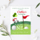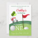 Célébrez la grande journée de vos petits avec cette invitation d'anniversaire sur le thème du golf ! Avec un chariot de golf de dessin animé joyeux, des ballons et un drapeau de golf, ce design est parfait pour les jeunes fans de golf et les familles qui aiment ce sport. La formulation amusante et la mise en page vibrante en font un choix idéal pour un premier anniversaire ou toute célébration inspirée du golf. Personnalisez avec les détails de votre fête et soyez prêt à faire la fête dans le style !