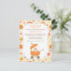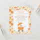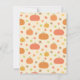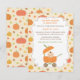 Une invitation à une fête de naissance pour célébrer les petits qui arrivent à l'occasion de thanksgiving, automne ! Elle présente un landau bébé conçu de manière unique comme une citrouille ! Un petit ange est assis à l'intérieur en suçant sa tétine. Des citrouilles et des feuilles d'automne ornent le fond. Personnalisez facilement avec les détails de votre fête de naissance.