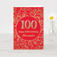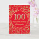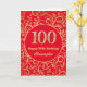 100e Anniversaire Carte d'Anniversaire Rouge et Or Floral. Pour plus de personnalisation, cliquez sur le bouton "Customiser" et utilisez notre outil de conception pour modifier ce modèle.