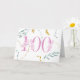 Dans le cadre d’un elegant design to mark this landmark d’occasion, with 100 in ornate style with flower decoration and in pink faux glitter taking center stage on the front, with teal and gold leaves flowing in from the edges. Inside your message, which you can easily personise.
