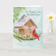 This hand-painted watercolor features a charming birdhouse adorned with a Happy Birthday banner, as a tufted titmouse and a cardinal stop by on a crisp winter day. Soft seasonal details and gentle colors create a warm, thoughtful scene, making it a lovely birthday piece for someone celebrating their 100th birthday!