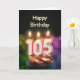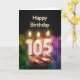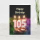 Un gâteau d'anniversaire avec des bougies. Les bougies sont composées du numéro 105, pour un 105ème anniversaire. Une carte d'anniversaire adaptée à tous.