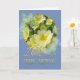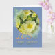 Une carte élégante avec Primroses sur un arrière - plan bleu.