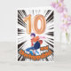 Celebrate a milestone in style! This dynamic folded greeting card features a shiny golden “10” balloon paired with a vibrant character in motion, set against an electrifying black-and-white burst background. The bold phrase “10 and Unstoppable!” captures the excitement of reaching double digits with confidence and energy. Perfect for kids who love action, adventure, and celebrating their big day with unstoppable spirit. Inside, uplifting wordings highlight empowerment, fun, and the joy of turning ten.