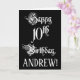 Le devant de cette somptueuse et élaborée carte de voeux d'anniversaire comporte le message "Joyeux 10e anniversaire", en texte orné de style script, sur un arrière - plan de couleur noire. L'intérieur a un message de voeux d'anniversaire personnalisé, ou peut-être peut-être être effacé et laissé vide si un message doit être écrit à la main à la place. Une carte de voeux d’anniversaire officielle et personnalisée comme celle-ci pourrait être utilisée pour célébrer le dixième anniversaire de quelqu’un. [~Z0000554]
