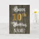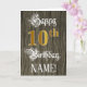 Le recto de cette carte de voeux ornée et élaborée à thème d'anniversaire comporte le message "Joyeux 10e anniversaire", ainsi qu'un nom de destinataire modifiable. Une partie du message est dans un texte de style script sophistiqué, le grand numéro "10th" est doté d'une imitation/faux motif de look d'inspiration or, et l'arrière - plan a une imitation/faux motif d'inspiration bois. L'intérieur a un message de voeux d'anniversaire personnalisable, ou peut-être peut-être être effacé et laissé vide si un message doit être écrit à la main à la place. Une carte de voeux d’anniversaire luxueuse et customisée comme celle-ci pourrait être utilisée pour célébrer le dixième anniversaire de quelqu’un. [~Z0000561]