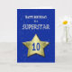 Carte de 10e anniversaire pour une superstar. Une grande étoile dorée portant l'âge flotte dans les cieux. Dans l'arrière - plan, les étoiles scintillent. Une belle carte d'anniversaire pour quelqu'un de très spécial.