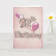 Carte 12e anniversaire avec une fille tenant des ballons