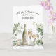 Watercolor wine bottle and two wine glasses, set against a soft green floral frame of ivy and eucalyptus, for the couple's 12th wedding anniversary.