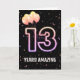 Ballons de fête et confettis sur arrière - plan noir avec le néon numéro 13 pour un 13ème anniversaire.