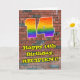 Ce dessin animé et amusant urbain de rue et de graffiti sur le thème de la carte de voeux d'anniversaire dispose d'un grand nombre "14" avec un dégradé coloré du spectre arc-en-ciel inspiré motif. Il comporte également le message "Joyeux 14e anniversaire", et un nom modifiable. L'arrière - plan de l'avant dispose d'un motif mural en brique. L'intérieur a un message de voeux d'anniversaire personnalisé, ou peut-être peut-être être effacé et laissé vide si un message doit être écrit à la main à la place. Une carte de voeux d’anniversaire dynamique et customisée comme celle-ci pourrait être utilisée pour souligner le quatorzième anniversaire de quelqu’un. [~Z0000586]