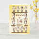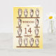 Carte de 14e anniversaire. Des chouettes curieux tournent la tête pour vous regarder et vous demander "Qui a un anniversaire aujourd'hui ?". Une drôle de carte d'anniversaire pour tous ceux qui aiment les chouettes. Les hiboux montrés sont des hiboux de grange.