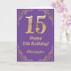 15e anniversaire violet et Parties scintillant or cadre. Pour plus de personnalisation, cliquez sur le bouton "Customiser" et utilisez notre outil de conception pour modifier ce modèle.