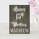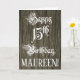 Le devant de cette carte de voeux d'anniversaire formelle et ornée comprend le message "Joyeux 15ème anniversaire", en texte de style script luxueux. L'avant comporte également un nom de destinataire personnalisable, et un motif arrière - plan d'apparence imitation bois. L'intérieur a un message de voeux d'anniversaire modifiable, ou peut-être peut-être être effacé et laissé vide si un message doit être écrit à la main à la place. Une carte de voeux d’anniversaire élégante et personnalisable comme celle-ci pourrait être utilisée pour souligner le quinzième anniversaire de quelqu’un. [~Z0000556]
