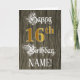 Le recto de cette carte de voeux d'anniversaire formelle et ornée comporte le message "Joyeux 16e anniversaire", ainsi qu'un nom de destinataire modifiable. Une partie du message est en texte élaboré de style script. Le grand numéro "16th" présente une imitation/faux motif d'inspiration or. L'arrière - plan a un motif imitation/imitation à grains de bois. L'intérieur a un message de voeux d'anniversaire personnalisé, ou peut-être peut-être être effacé et laissé vide si un message doit être écrit à la main à la place. Une carte de voeux d’anniversaire élégante et personnalisée comme celle-ci pourrait être envoyée pour célébrer le seizième anniversaire de quelqu’un. [~Z0000561]