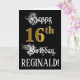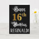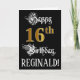 La façade de cette carte de voeux fantaisie et opulente d'anniversaire comporte le message "Joyeux 16e anniversaire", ainsi qu'un nom de destinataire personnalisé. Une partie du message est dans un texte somptueux de style script. Le grand numéro "16th" présente un motif de look imitation or/imitation. L'arrière - plan est noir de couleur. L'intérieur a un message de voeux d'anniversaire personnalisable, ou peut-être peut-être être effacé et laissé vide si un message doit être écrit à la main à la place. Une carte de voeux d'anniversaire élégante et personnalisable comme celle-ci pourrait être un moyen respectable d'envoyer un message de voeux d'anniversaire à quelqu'un qui célèbre son seizième anniversaire. [~Z0000559]