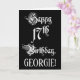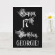 L'avant de cette carte de voeux d'anniversaire opulente et élégante présente le message "Joyeux 17e anniversaire", en texte de style script, sur un arrière - plan de couleur noire. L'intérieur a un message de voeux d'anniversaire personnalisé, ou peut-être peut-être être effacé et laissé vide si un message doit être écrit à la main à la place. Une carte de voeux d’anniversaire formelle et personnalisable comme celle-ci pourrait être envoyée pour célébrer le dix-septième anniversaire de quelqu’un. [~Z0000554]