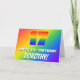 L'avant de cette carte de voeux colorée et amusante à thème d'anniversaire dispose d'un grand nombre de "17" ayant un motif multicolore à dégradé inspiré du spectre arc-en-ciel. Il comporte également le message "HAPPY 17th BIRTHDAY", et un nom de destinataire personnalisé. L'arrière - plan à l'avant a également un joyeux motif de gradient de spectre arc-en-ciel. L'intérieur comporte un message d'anniversaire personnalisé, ou pourrait être effacé et laissé vide si un message doit être écrit à la main à la place. Une carte de voeux d’anniversaire très intéressante et personnalisable comme celle-ci pourrait être envoyée pour célébrer le dix-septième anniversaire de quelqu’un. [~Z0000585]