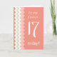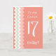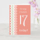 Une carte d'anniversaire 17 ans élégante pour un cousin, avec un motif chevron tendance en corail, vert menthe et blanc par Judy Adamson. Vous pouvez modifier le texte intérieur si vous le souhaitez.