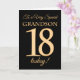Une 18ème carte d'anniversaire chic pour "un petit-fils très spécial", avec un numéro 18 composé de nombres d'or-effet et de mot "petit-fils", dans l'or-effet, sur un arrière - plan noir. Le message intérieur, que vous pouvez changer si vous souhaitez, est "joyeux anniversaire"
