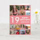 19th Happy Birthday Photo Collage 13 Photos Carte d'anniversaire rose et blanc pour n'importe quel âge. 1er 13ème 15ème 16ème 18ème 20ème 21ème 30ème 40ème 50ème 60ème 70ème 80ème 90ème 100ème, tout âge. Pour plus de personnalisation, cliquez sur le bouton "Customiser" et utilisez notre outil de conception pour modifier ce modèle.