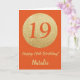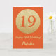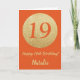 Happy 19th Birthday Orange and Gold Glitter Card with personalized name. For further customization, please click the "Customize it" button and use our design tool to modify this template.
