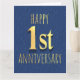 1er anniversaire design sur un arrière - plan en faux cuir bleu.