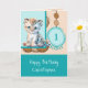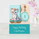 1 aujourd'hui carte de voeux d'anniversaire. Première / 1ère carte d'anniversaire / tout âge / changer l'âge pour convenir. Avec un mignon léopard. Turquoise, bleu et marron.