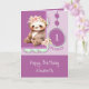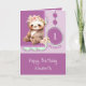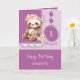 1 aujourd'hui carte de voeux d'anniversaire. Première / 1ère carte d'anniversaire / tout âge / changer l'âge pour convenir. Doté d'un mignon bébé paresseux avec des fleurs. Violet et vert.