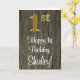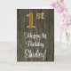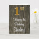 Cette conception sophistiquée, élégante et luxueuse de carte de voeux d'anniversaire comporte un grand numéro ordinal "1st" avec une imitation/faux motif dégradé de style or, en plus du message de voeux d'anniversaire "Happy 1st Birthday", et un nom personnalisable dans une police de style script sur le devant. Il a également un faux motif arrière - plan d'inspiration bois sur le devant. L'intérieur a un message d'anniversaire personnalisé, ou peut-être peut-être être effacé et laissé vide si un message doit être écrit à la main à la place. Une élégante carte de voeux d’anniversaire personnalisable comme celle-ci pourrait être utilisée pour célébrer le premier anniversaire de quelqu’un. [~Z0000519]
