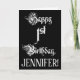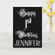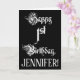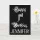 L'avant de cette somptueuse et somptueuse carte de voeux d'anniversaire comporte le message "Happy 1st Birthday", en texte élégant de style script, sur un arrière - plan de couleur noire. L'intérieur a un message de voeux d'anniversaire personnalisé, ou peut-être peut-être être effacé et laissé vide si un message doit être écrit à la main à la place. Une carte de voeux d’anniversaire ornée et personnalisable comme celle-ci pourrait être envoyée pour célébrer le premier anniversaire de quelqu’un. [~Z0000554]