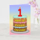 Cette carte de voeux colorée et optimisée, sur le thème de l'anniversaire, présente une représentation de dessin animé d'un gâteau d'anniversaire à trois étages avec une bougie en forme de chiffre sur le dessus indiquant le numéro "1", ainsi que le message "HAPPY 1ST BIRTHDAY", et un nom de destinataire personnalisé. L'arrière - plan de l'avant a un motif multicolore pastel en arc-en-ciel inspiré du spectre dégradé. L'intérieur comporte un message de voeux d'anniversaire customisé, ou peut-être pourrait-il être effacé et laissé vide si un message doit être écrit à la main à la place. Une carte de voeux d'anniversaire joyeuse et modifiable comme celle-ci pourrait être une façon amusante d'envoyer des voeux d'anniversaire à quelqu'un qui célèbre son premier anniversaire. [~Z0000625]