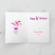 Une amusante carte de Noël Dinosaur 1er avec un dessin animé en parties scintillant rose pâle et violet dinosaures enveloppé cadeaux / cadeau et un arrière - plan d'un ciel bleu avec des flocons de neige tombants. Joyeux premier Noël comme typographie festive décorative. Je ferais une belle carte de vacances de Noël à donner à toute petite fille qui aime les dinosaures. L'intérieur gauche de la carte a le mignon Pterodactyl Dinosaur rose portant des cloches de Noël. Personnalisez avec un nom et ajoutez à / modifier le message intérieur. ", beaucoup d'amour"