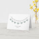Carte de voeux moderne pour le 20e anniversaire de mariage avec des coeurs vert clair sur une guirlande.