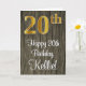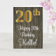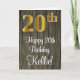 Cette carte de vœux d'anniversaire luxueuse, élégante et raffinée comporte un grand nombre ordinal « 20e » avec une apparence dorée fausse/imitée, ainsi que le message d'anniversaire « Joyeux 20e Anniversaire » et un nom personnalisable dans une police script sur le devant. Le fond de la face avant présente un motif inspiré du faux bois. L'intérieur comporte un message d'anniversaire personnalisé, ou pourrait éventuellement être laissé vierge si un message doit être écrit à la main à la place. Une carte d'anniversaire personnalisée et sophistiquée comme celle-ci pourrait être utilisée pour célébrer le vingtième anniversaire de quelqu'un.