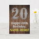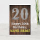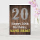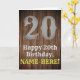 Cette carte de voeux inspirée du pays et inspirée de l'Occident est composée d'un grand numéro d'inspiration rustique "20", du message "Joyeux 20e anniversaire", d'un nom personnalisé, et d'un arrière - plan motif de style imitation bois/imitation. L'intérieur a un message de voeux d'anniversaire personnalisé, ou peut-être peut-être être effacé et laissé vide si un message doit être écrit à la main à la place. Une carte de voeux d'anniversaire personnalisable comme celle-ci pourrait être une façon amusante d'envoyer des voeux d'anniversaire à quelqu'un qui célèbre son vingtième anniversaire. [~Z0000469]