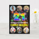 L'avant de cette carte de voeux d'anniversaire passionnante et audacieuse comprend un grand numéro "21" avec un motif dégradé coloré inspiré du spectre arc-en-ciel, avec le message "HAPPY 21st BIRTHDAY", et un nom personnalisé, sur un motif multicolore inspiré par les feux d'artifice. Près du haut et du bas de l’avant se trouvent des images qui peuvent être customisées, peut-être avec des photos de la famille et des amis du bénéficiaire. L'intérieur comporte un message de voeux d'anniversaire customisé, ou peut-être pourrait-il être effacé et laissé vide si un message doit être écrit à la main à la place. Une carte de voeux d'anniversaire optimiste et personnalisable comme celle-ci pourrait être une façon amusante de transmettre un message d'anniversaire à quelqu'un qui célèbre son vingt et unième anniversaire. (Photographie © Storytree Studios, Stanford, CA.) [~Z0000660]