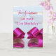 Personnalisez cette carte de 21e anniversaire pour cette jeune femme spéciale. Cette carte présente un thème bleu et rose avec des talons rose vif. En haut se trouve son nom écrit dans de belles lettres roses cursives avec "sur ton 21e anniversaire" en dessous. Deux verres à vin sont disposés dans l'arrière - plan et les talons roses vifs sont en bas. L'intérieur de la carte continue le thème bleu et rose avec un message chaleureux. Personnalisez cette carte de voeux dès aujourd'hui ! Art : Terri Condé