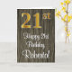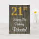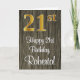 Cette carte de voeux élégante, luxueuse et élégante à thème d'anniversaire comporte un grand numéro ordinal "21st" ayant une apparence imitation/faux or, en plus du message de voeux d'anniversaire "Happy 21st Birthday", et un nom modifiable dans une police de style script sur le devant. L'arrière - plan du devant a un motif d'inspiration imitation bois. L'intérieur a un message de voeux d'anniversaire modifiable, ou peut-être peut-être être effacé et laissé vide si un message doit être écrit à la main à la place. Une carte de voeux d’anniversaire personnalisée sophistiquée comme celle-ci pourrait être envoyée pour célébrer le vingt et unième anniversaire de quelqu’un. [~Z0000519]