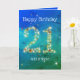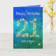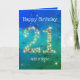 21e carte d'anniversaire. Âge 21, Carte d'anniversaire 21ème avec un design de carte bleue verte et le numéro 21 créé avec l'or blanc et les étoiles rouges et une texture bleu vert dégradé texte arrière - plan personnalisable. Vous pouvez modifier ou supprimer le texte comme vous le souhaitez, en cliquant sur "Personnaliser ce modèle". Texte personnalisable : devant la carte : Joyeux anniversaire et ajouter un nom. Texte personnalisable : carte intérieure : "Wishing You a Very Happy 21st Birthday" et zone de message personnalisée. Plus de couleurs et d'autres âges sont disponibles. Si vous avez des besoins spécifiques, veuillez me contacter.