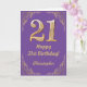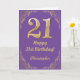 Carte 21e anniversaire Parties scintillant violet et or